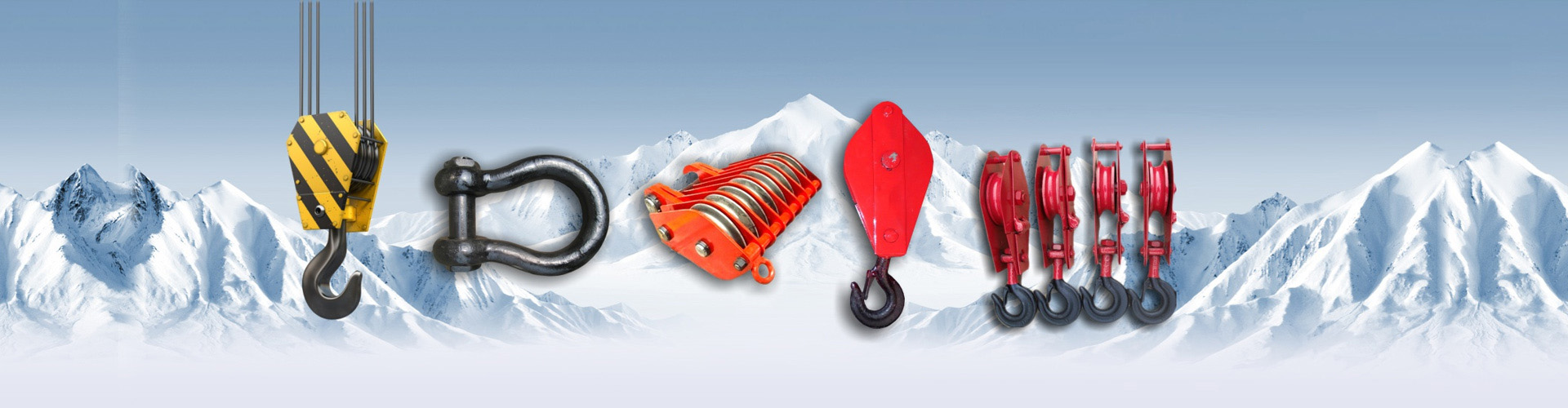 專業生產0.5T~200T各種系列鋼索起重 滑車及船用、陸用各種規格索具、卸扣、環眼、鋼板吊鉤等的企業。